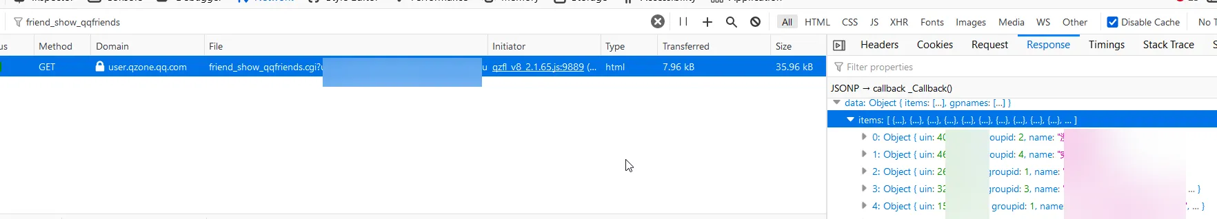 里面的 items 的 uin 数字就是QQ号了。