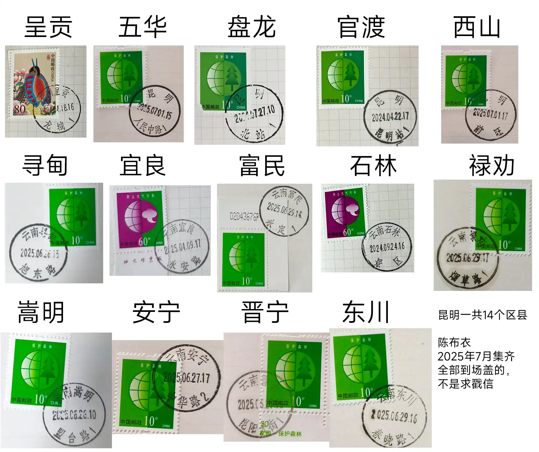 集齐了昆明14个区县的邮戳 我是一个昆明人,我自豪。昆明一共有14个区县,每个我都去了一趟,并盖戳留念。 集齐了昆明14个区县的邮戳 http://buyi.dev/2025/postmarks-km/ 作者 Chen Buyi 发布于 2025年7月2日 许可协议 我的 FFMPEG UI 上一篇 制作遗嘱公证的经历 下一篇